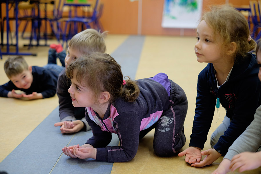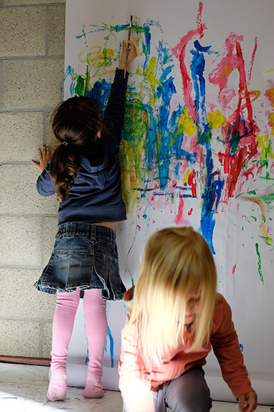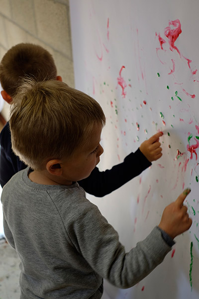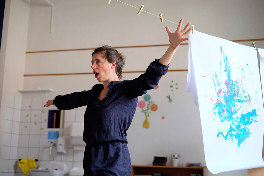 in april 2016 workshops given by claire goldfarb, cello and voice and tanja mosblech, painting, in nursery classes in the context of the piece „little drops“.
